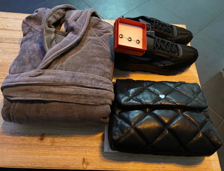 Sac LE PETIT CARTEL – Basket REEBOK LEGACY – Peignoir LA REDOUTE INTÉRIEUR – Bracelet HISTOIRE D’OR