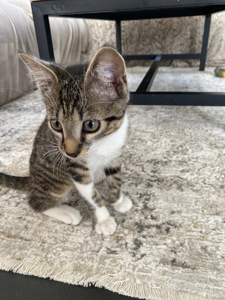 Petit être d’origine féline et type européen que l’on a trouvé dans la rue… nous n’avons pas eu le coeur de le laisser abandonné à son triste sort tout minuscule qu’il était.