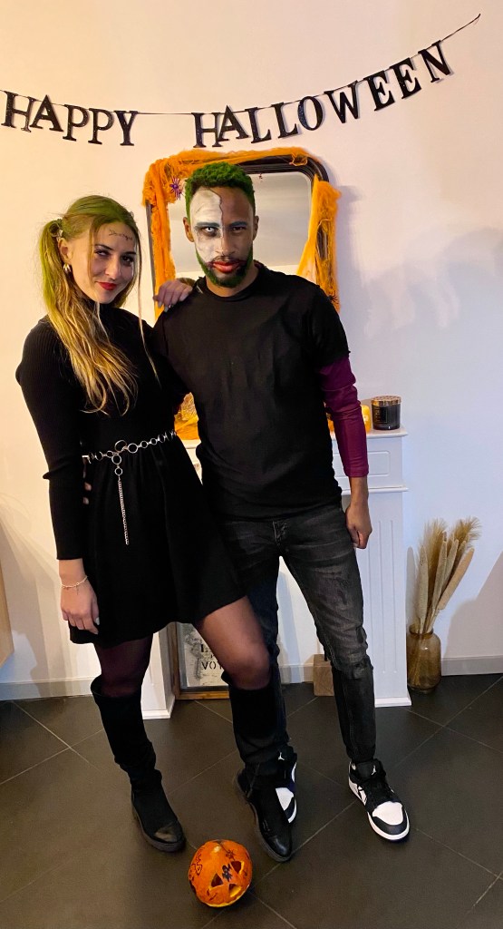 Mon frère et ma belle soeur étaient partis sur le thème du Joker, ils étaient tout mignons avec malheureusement en prime une infection de l’oeil pour ma belle soeur qui n’a pas supporté sa lentille de couleur !